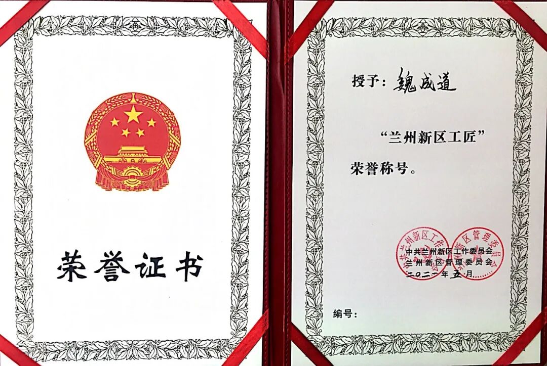 我司魏成道榮獲“蘭州新區(qū)工匠”榮譽(yù)稱號。